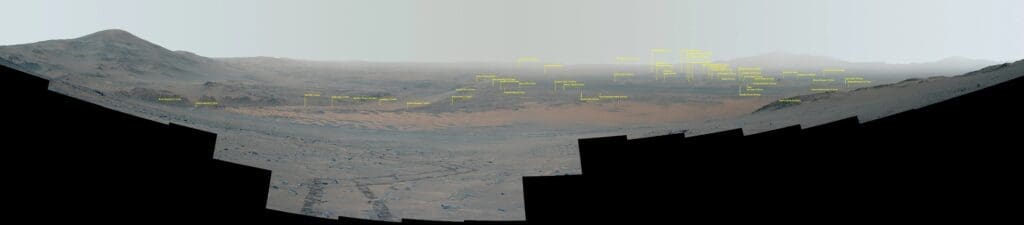 Ensamblada a partir de 44 fotos tomadas el 27 de septiembre, en lo que fue el día marciano número 1.282 de Perseverance, el mosaico de imágenes presenta muchos puntos de referencia.