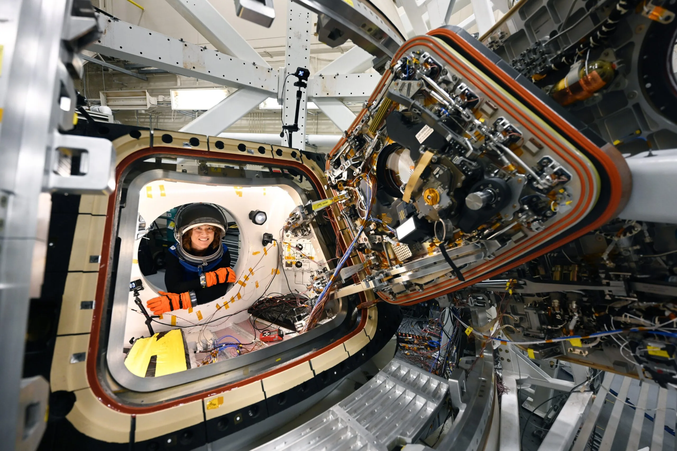 Actualmente, la tripulación ya quedó sellada dentro de la nave Orión luego del cierre de la escotilla del módulo de tripulación y de la escotilla del sistema de aborto de lanzamiento. Antes de esa configuración final, los equipos de cierre o closeout crew realizaron verificaciones de hermeticidad, alineación y pérdida de presión para confirmar que la cápsula quedara correctamente presurizada y lista para vuelo. Después, completaron el aseguramiento del área de la escotilla y las conexiones externas de Orión, otro paso de cierre necesario antes del despegue. Con esta etapa completada, Orión ya se encuentra en su configuración final para el despegue.